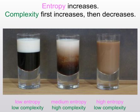The first question is why I omitted the notion of coarse-graining, which plays a central role in many accounts of entropy and complexity. The short answer is that I shouldn’t have omitted it. In fact, as both Sean Carroll and Luca Trevisan (among others) quickly pointed out, one can tell a perfectly-reasonable story about the coffee cup by defining the “complextropy,” not in terms of sophistication, but in terms of the ordinary Kolmogorov complexity of a coarse-grained or “smeared-out” state. If you define the complextropy that way, it should increase and then decrease as desired, and furthermore, it’s probably easier to prove that statement than using the sophistication-based definition (though both versions seem highly nontrivial to analyze).
