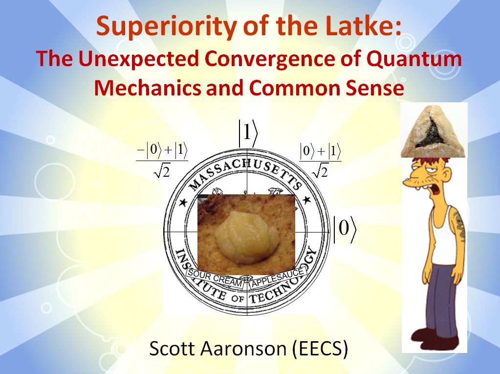 In summary, if you’re the sort of person who stops me in elevators to say that you like my blog even though you never actually understand anything in it, then stop reading Shtetl-Optimized right now and go read Lance’s book. You’ll understand it and you’ll enjoy it.